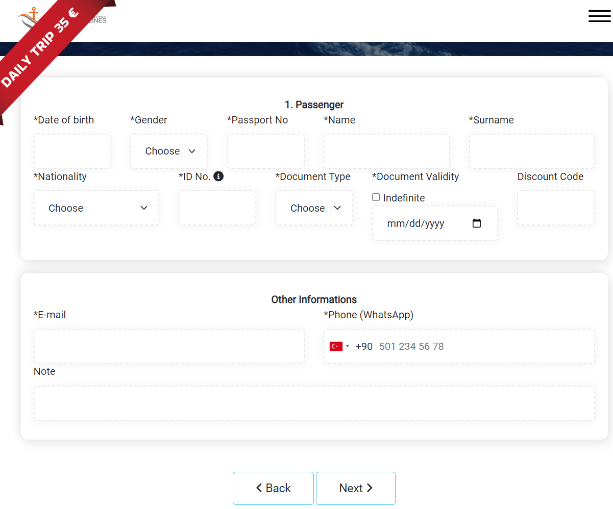 Сайт двуязычный: турецкий и английский. Однако имейте ввиду, что если вы будете заказывать билеты на турецкоязычной версии сайта, то нужо искать билеты не в Kastellorizo, а в Meis. Именно так этот остров называется на турецком языке.
